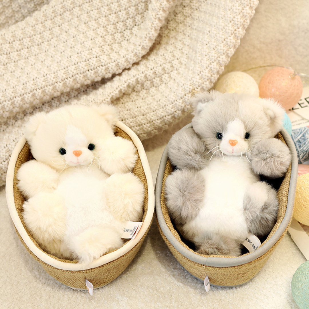 Mignon bébé chat en peluche avec berceau 22 cm/8,6 pouces